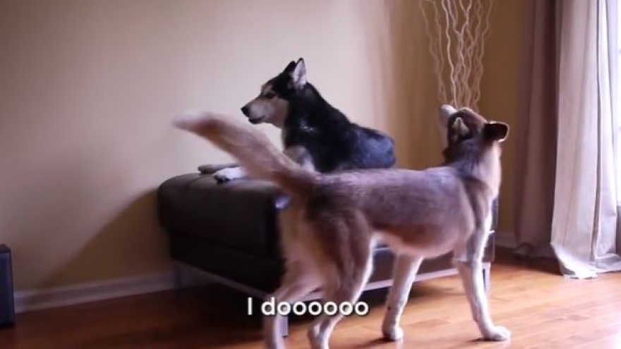 VOV.VN - Mishka và Laika là 2 chị em và cũng giống như con người, 2 chú chó này đôi khi bất đồng ý kiến và cần 1 cuộc trò chuyện "nghiêm túc" với nhau.