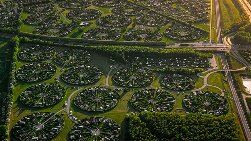 VOV.VN - Những ngôi nhà trong "thành phố vườn" Brøndby ở ngay bên ngoài Copenhagen, Đan Mạch được kiến trúc sư Erik Mygind thiết kế năm 1964 trông như những công trình kiến trúc từ một thế giới khác.
