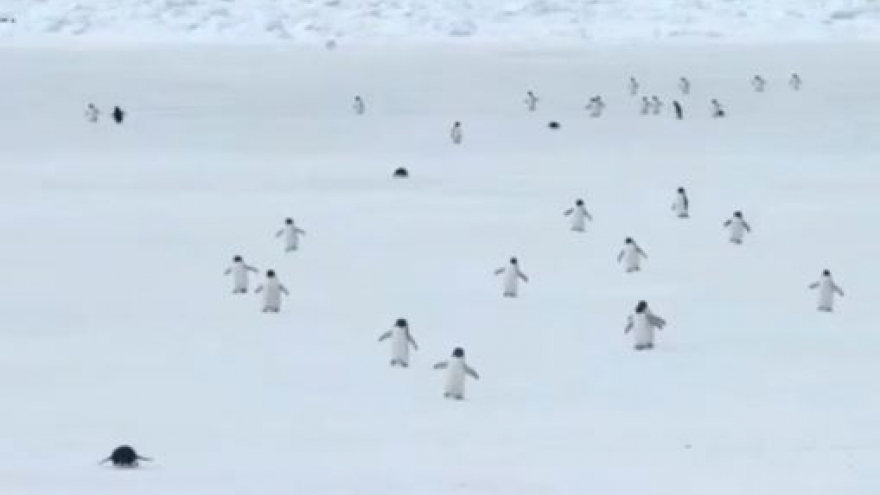 VOV.VN - Nếu tăng tốc độ video lên 5 lần, chúng ta sẽ thấy những chú chim cánh cụt có cách đi lại vô cùng hài hước khi chẳng khác nào những chú lật đật đang dao động liên tục.