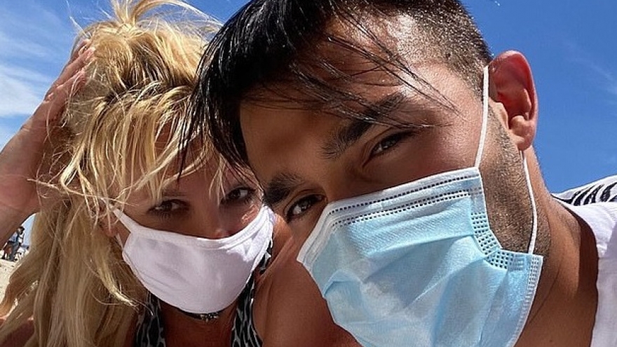 Britney Spears đeo khẩu trang nằm phơi nắng trên bãi biển bên tình trẻVOV.VN -Britney Spears và người tình kém 13 tuổi Sam Asghari đeo trang bị khẩu trang kín mít khi nằm phơi nắng trên bãi biển vừa qua.
