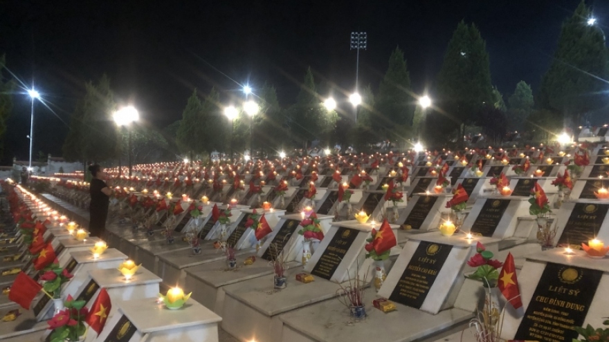 VOV.VN - Hướng tới kỷ niệm 75 năm Ngày thương binh liệt sĩ (27/7/1947 – 27/7/2022), tối 9/7, tại Nghĩa trang liệt sĩ Quốc gia Vị Xuyên, tỉnh Hà Giang đã diễn ra Lễ cầu siêu tưởng niệm anh linh các anh hùng liệt sĩ.