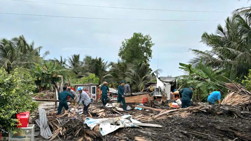VOV.VN - Theo thống kê sơ bộ, do ảnh hưởng bão số 5, trên địa bàn tỉnh An Giang có mưa lớn, dông, lốc khiến 1 người mất tích, nhiều nhà dân bị tốc mái, hư hại.