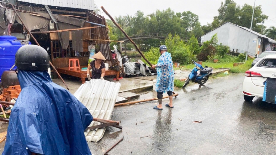 VOV.VN - Vào khoảng 8h30 phút sáng 30/5, một trận mưa lớn kèm theo lốc xoáy xảy ra tại tổ 2, ấp Bào Trâm, xã Nam Yên, huyện An Biên, tỉnh Kiên Giang, khiến 6 ngôi nhà của 6 hộ dân bị tốc mái và hư hỏng nặng. Tổng thiệt hại ước tính gần 200 triệu đồng.