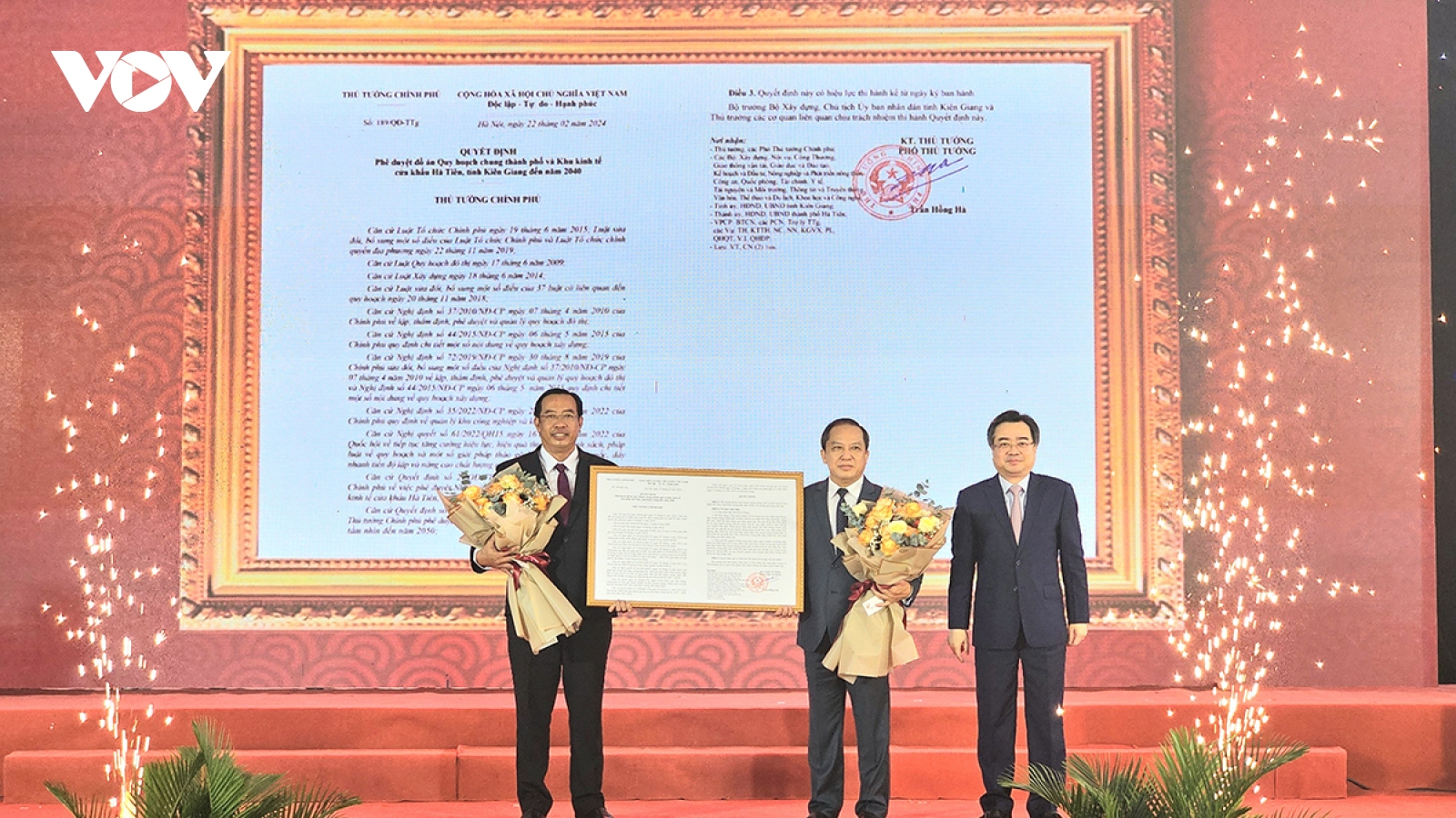 VOV.VN - Ngày 15/3, UBND tỉnh Kiên Giang phối hợp với Bộ Xây dựng tổ chức hội nghị công bố Đồ án Quy hoạch chung thành phố và Khu kinh tế cửa khẩu Hà Tiên đến năm 2040 và xúc tiến đầu tư trên địa bàn thành phố.