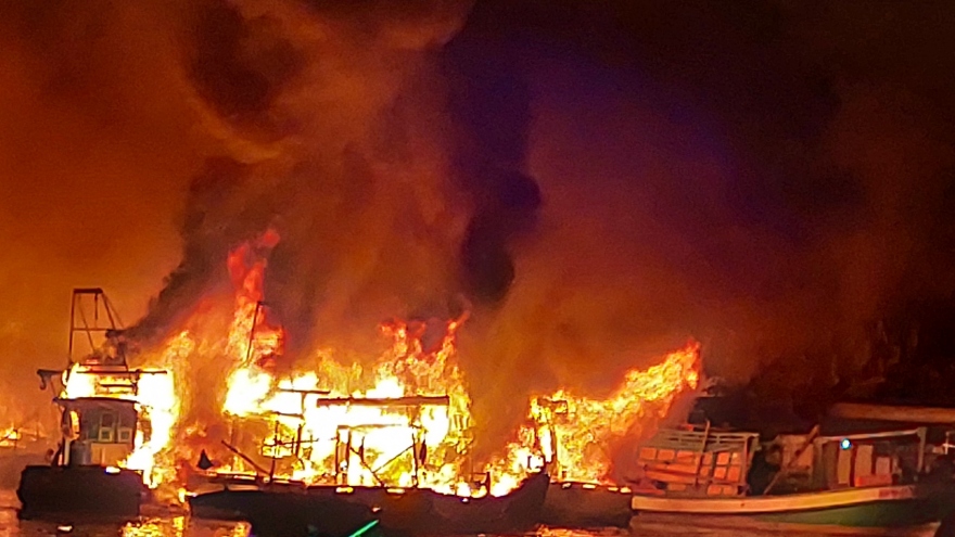 VOV.VN - Bước đầu xác định, ngọn lửa bùng phát tại 2 căn nhà tạm thuộc Tổ 3 khu phố Kiên Tân, sau đó cháy lan sang các tàu đánh bắt hải sản đang neo đậu sau nhà.