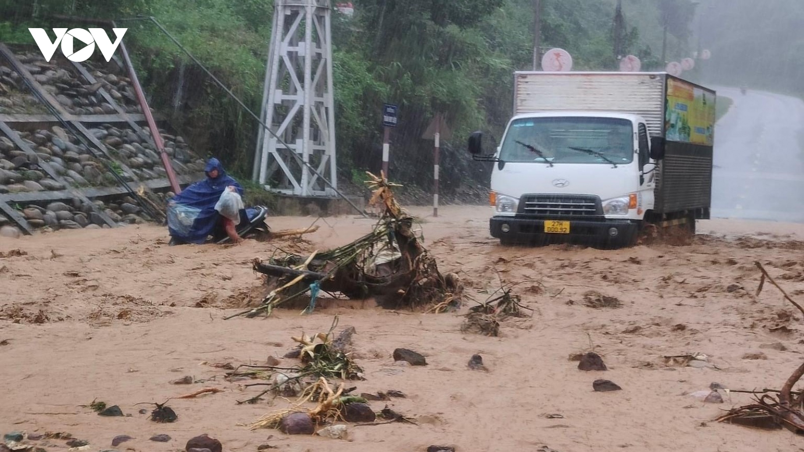 VOV.VN - Trận mưa lớn xảy ra trong sáng nay 28/8 đã khiến nhiều tuyến đường ở thành phố Sơn La, tỉnh Sơn La ngập trong biển nước, các phương tiện di chuyển rất khó khăn.