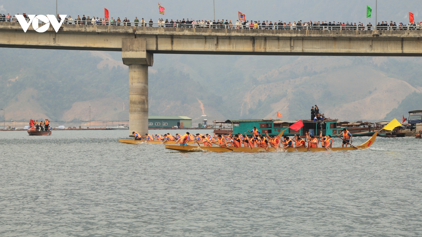 VOV.VN - Sáng nay 28/1, hàng nghìn du khách và người dân đã tụ hội tại vùng lòng hồ sông Đà để tham gia Lễ hội đua thuyền truyền thống huyện Quỳnh Nhai (Sơn La).