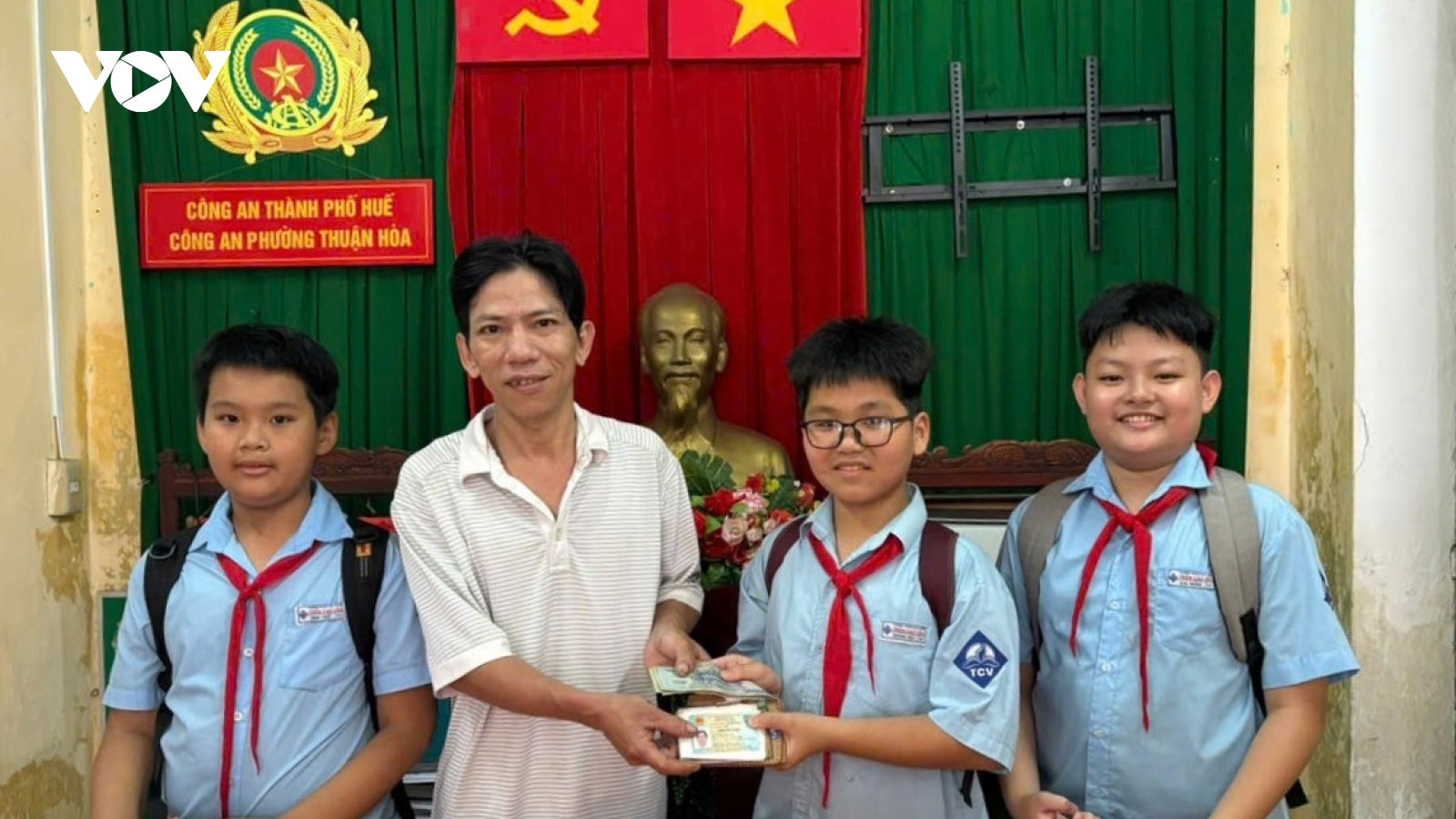 VOV.VN - 3 học sinh lớp 6/4, Trường THCS Trần Cao Vân, phường Thuận Hòa, quận Phú Xuân, thành phố Huế gồm em Lý Gia Hân, Hồ Hoàng Bảo và Đoàn Minh Triết đã có hành động đẹp khi nhặt được một chiếc ví và kịp thời trao trả cho người bị mất.
