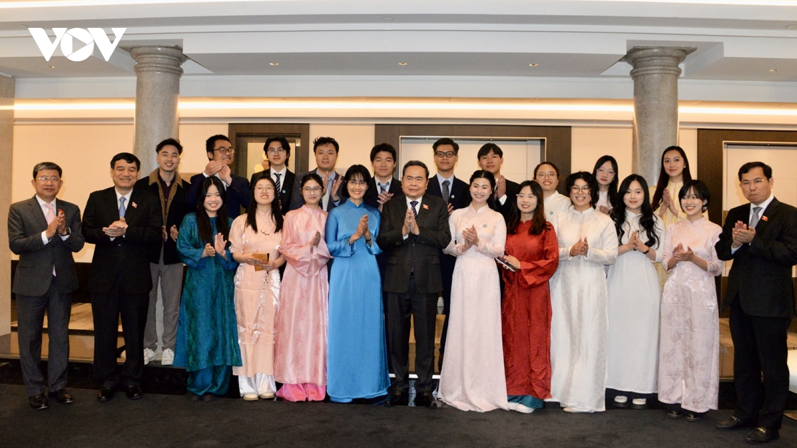 VOV.VN - Trong khuôn khổ chuyến thăm chính thức Cộng hòa Italy, sáng 12/4 (theo giờ địa phương), tại TP Milan, Chủ tịch Quốc hội Trần Thanh Mẫn đã gặp Hội sinh viên và các lưu học sinh Việt Nam tại Italy.