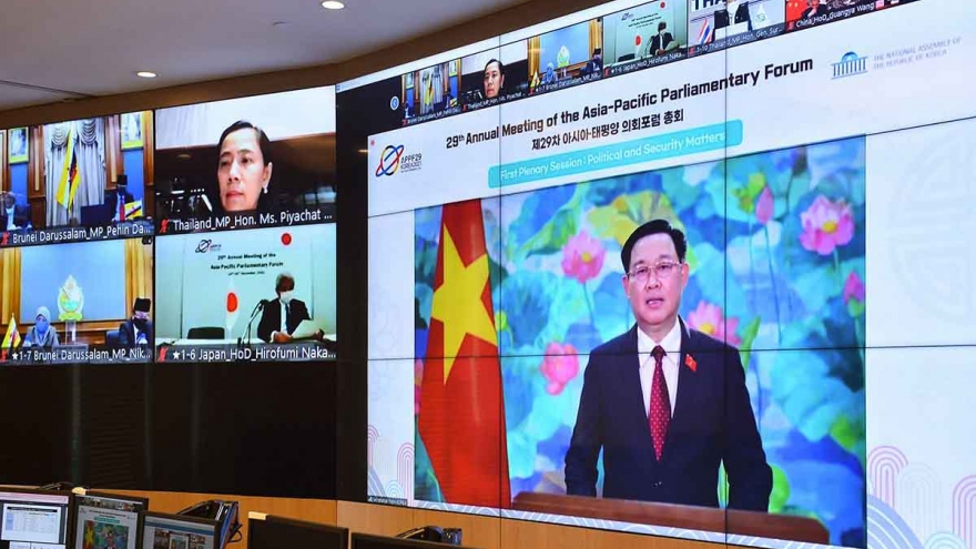 VOV.VN - Chủ tịch Quốc hội đề nghị các nước thành viên của APPF ủng hộ và giám sát Chính phủ thực hiện các cam kết quốc tế xây dựng kinh tế xanh, kinh tế tuần hoàn vì một nền kinh tế bền vững, tự cường hơn và bao trùm