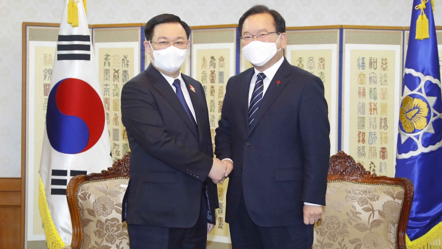 VOV.VN - Trong khuôn khổ chuyến thăm chính thức Hàn Quốc, sáng 15/12/2021, Chủ tịch Quốc hội Vương Đình Huệ đã tiếp Chủ tịch kiêm Tổng Giám đốc Tập đoàn Amkor Technology Ji Jong-rip và Chủ tịch Tập đoàn tài chính Hana Kim Jung-tai.