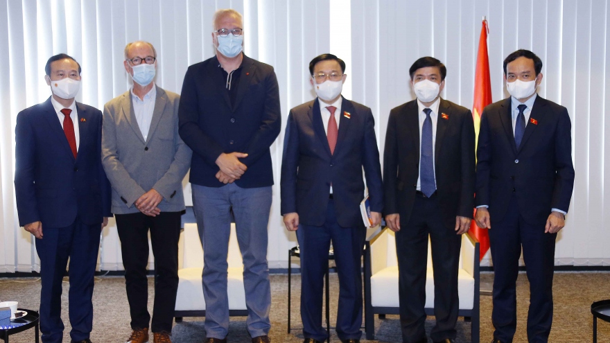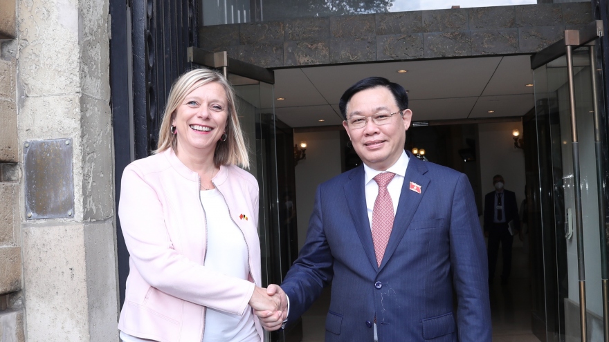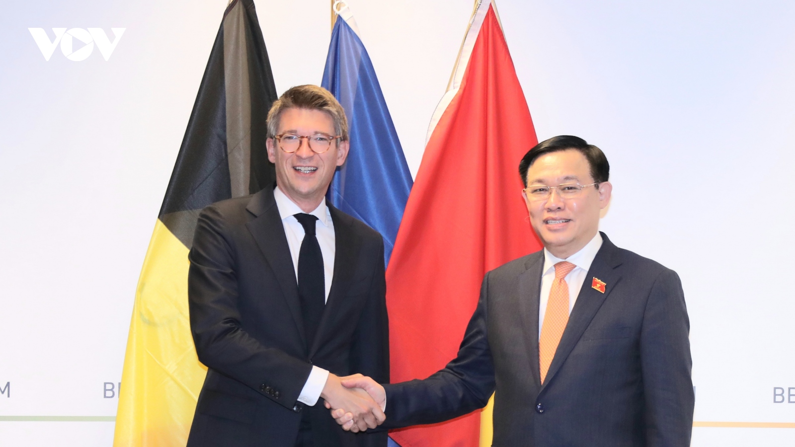 VOV.VN - Chiều 9/9, theo giờ địa phương (tối cùng ngày giờ Việt Nam), trong khuôn khổ chuyến thăm làm việc tại Vương quốc Bỉ, Chủ tịch Quốc hội Vương Đình Huệ đã gặp Phó Thủ tướng kiêm Bộ trưởng Bộ Kinh tế và Việc làm Bỉ Pierre- Yves Dermagne.