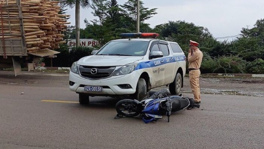 VOV.VN - Chiều 11/1, khi đang đi tuần tra, chiếc ô tô của của Phòng cảnh sát Giao thông Công an tỉnh Quảng Nam bị xe máy lưu thông cùng chiều phía sau va chạm. Sau vụ việc, thanh niên điều khiển xe máy tử vong.