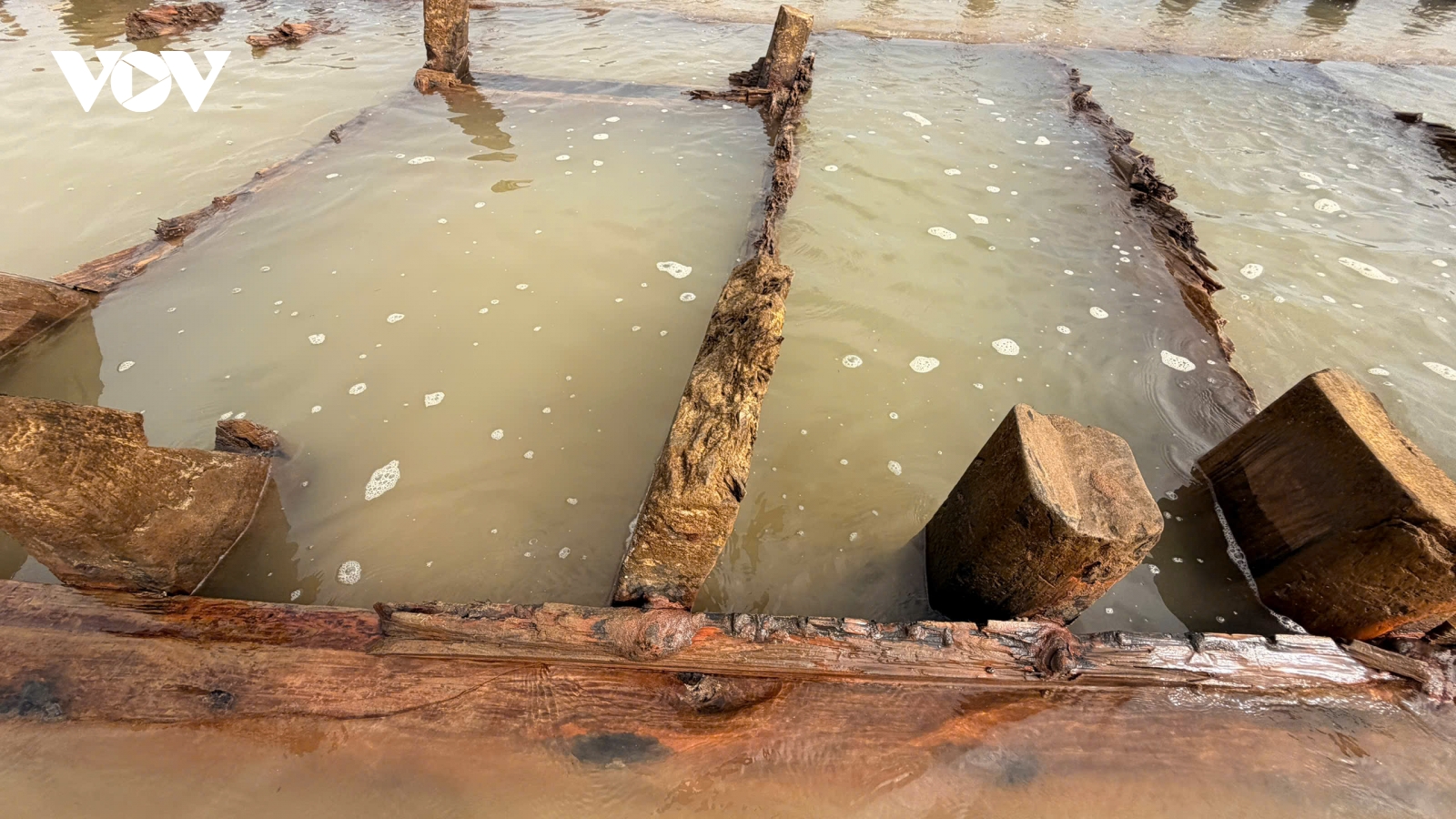 Tàu gỗ nghi tàu cổ lộ diện sau bão số 13 ở Hội An