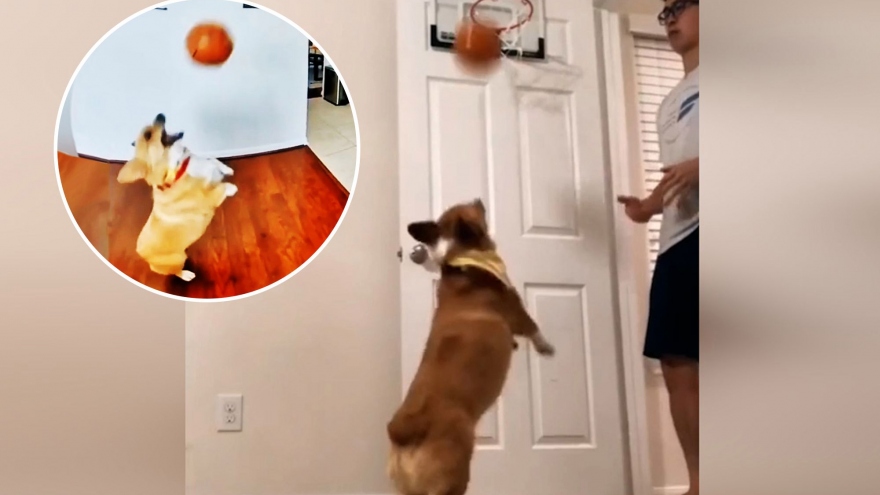 VOV.VN - Chú chó Corgi Lilo 5 tuổi đã phô diễn khả năng chơi bóng rổ không khác gì một vận động viên chuyên nghiệp khi liên tục ném trúng bóng vào rổ ở nhiều cấp độ khác nhau.