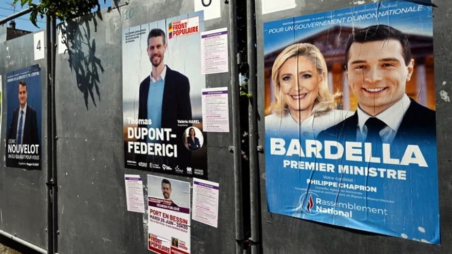 VOV.VN - Theo kết quả sơ bộ tính đến gần nửa đêm hôm qua (30/6) Đảng theo đường lối cực hữu “Tập hợp Quốc gia” tại Pháp giành ưu thế lớn tại vòng 1 cuộc bầu cử Quốc hội trước thời hạn tại Pháp với khoảng 33,5% số phiếu, bỏ xa Liên minh cánh tả với 29,1% và liên minh của Tổng thống Emmanuel Macron với 22%.
