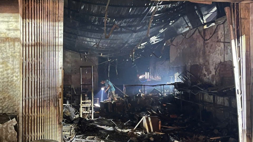 VOV.VN - Hàng chục người sống trong khu nhà trọ 4 tầng tại ngã tư Nguyễn Thái Học - Nguyễn Hồng Sơn (Khánh Hòa) hoảng hốt tháo chạy khi hỏa hoạn bùng phát lúc rạng sáng.