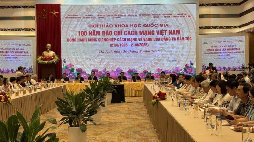 VOV.VN - Hội thảo khoa học quốc gia “100 năm Báo chí cách mạng Việt Nam đồng hành cùng sự nghiệp vẻ vang của Đảng và dân tộc” diễn ra chiều ngày 30/5 tại Hà Nội.