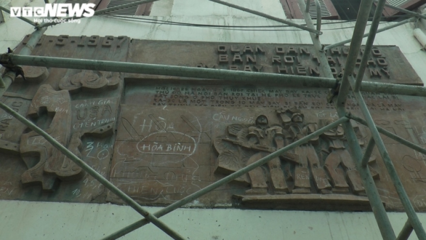 VOV.VN - Công ty cổ phần Thiết bị Bưu điện cho biết, bức phù điêu ở toà nhà Pháp cổ ghi dấu sự kiện Quân dân Thủ đô bắn rơi máy bay Mỹ sẽ được giữ gìn nguyên trạng.