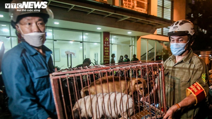 VOV.VN - Những thành viên trong đội bắt chó thả rông phường Kim Giang (Thanh Xuân, Hà Nội) đi kiểm tra trên các tuyến phố, dùng vợt lưới để bắt chó trong đêm.