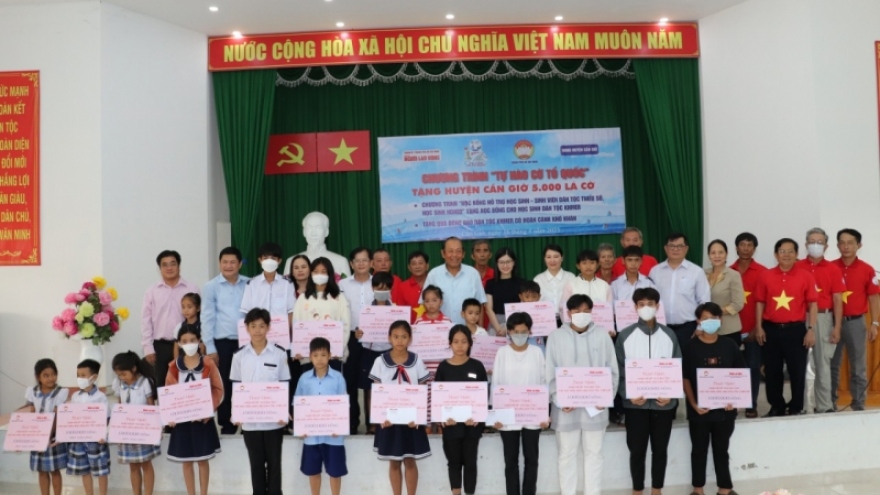 VOV.VN - Dịp Tết Chôl Chnăm Thmây 2023 của đồng bào Khmer, Ủy ban MTTQ TP.HCM phối hợp Báo NLĐ tổ chức trao tặng các phần quà cho đồng bào dân tộc Khmer nghèo và kinh phí hỗ trợ học tập cho học sinh, sinh viên dân tộc Khmer có hoàn cảnh khó khăn tại huyện Cần Giờ. Cùng dự chương trình có ông Trương Hòa Bình, nguyên Ủy viên Bộ Chính trị, nguyên Phó Thủ tướng thường trực Chính phủ.