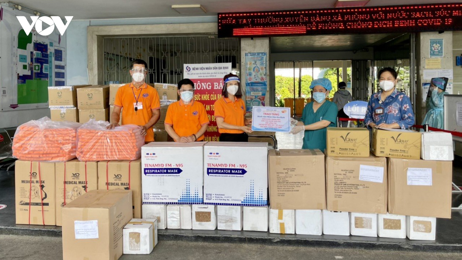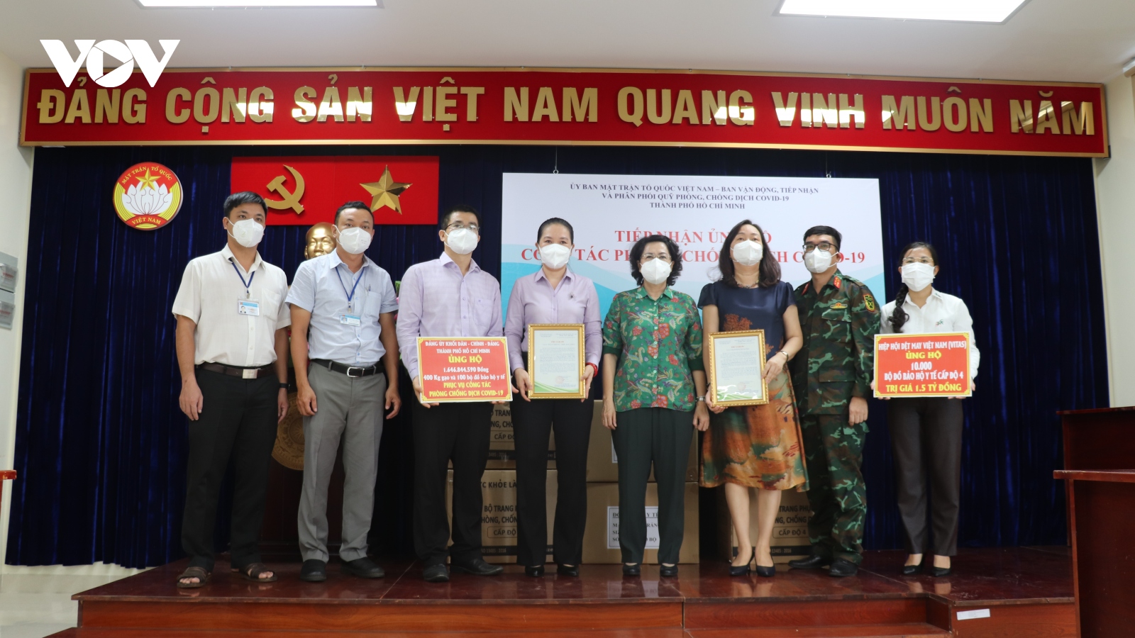 VOV.VN - Sáng nay (6/9), Ủy ban MTTQ Việt Nam TP.HCM tổ chức lễ tiếp nhận ủng hộ công tác phòng, chống dịch đồng thời bàn giao ngay cho các đơn vị nhằm bổ sung ngay các trang thiết bị y tế cần thiết, hỗ trợ khu cách ly, điều trị bệnh nhân nặng.