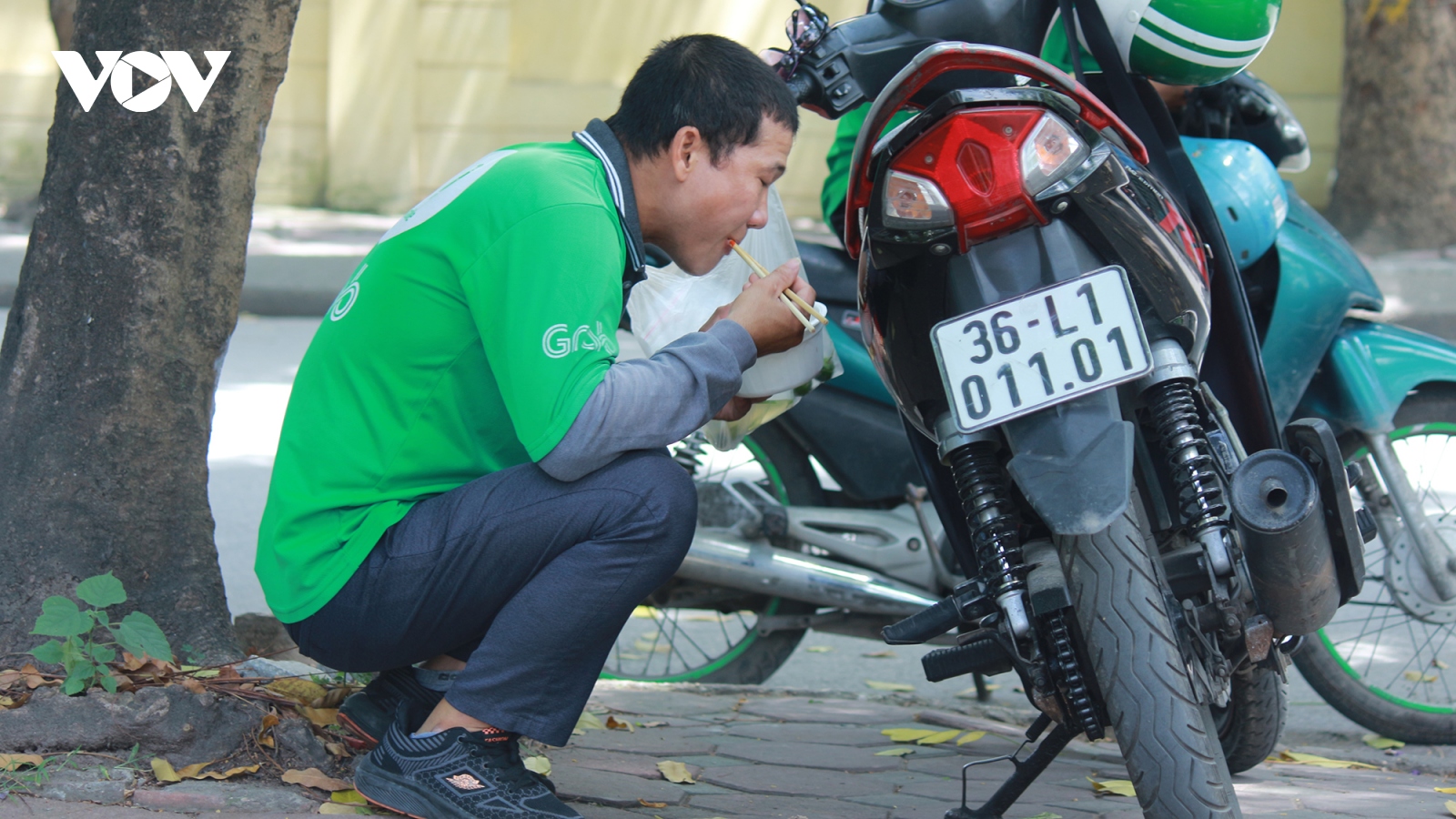VOV.VN - Dạo một vòng quanh phố phường Hà Nội vào giữa trưa, rất dễ bắt gặp hình ảnh người lao động lủi thủi cùng bữa cơm bụi đúng nghĩa khi hàng quán chỉ bán mang về.