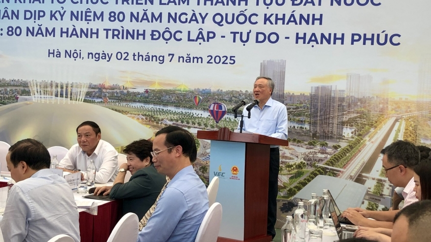 VOV.VN - Chiều nay (2/7), tại Trung tâm triển lãm Việt Nam, diễn ra cuộc họp triển khai công tác tổ chức Triển lãm thành tựu đất nước, nhân dịp kỷ niệm 80 năm ngày Quốc khánh với Chủ đề: 80 năm hành trình Độc lập – Tự do – Hạnh phúc.