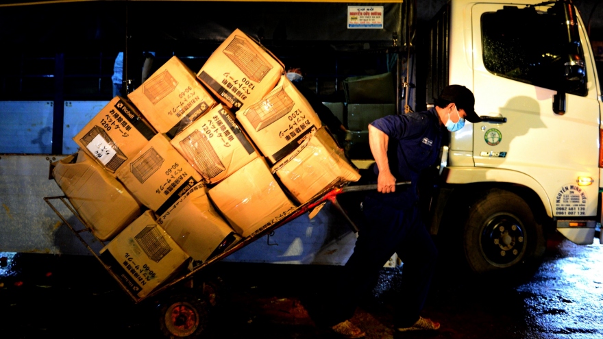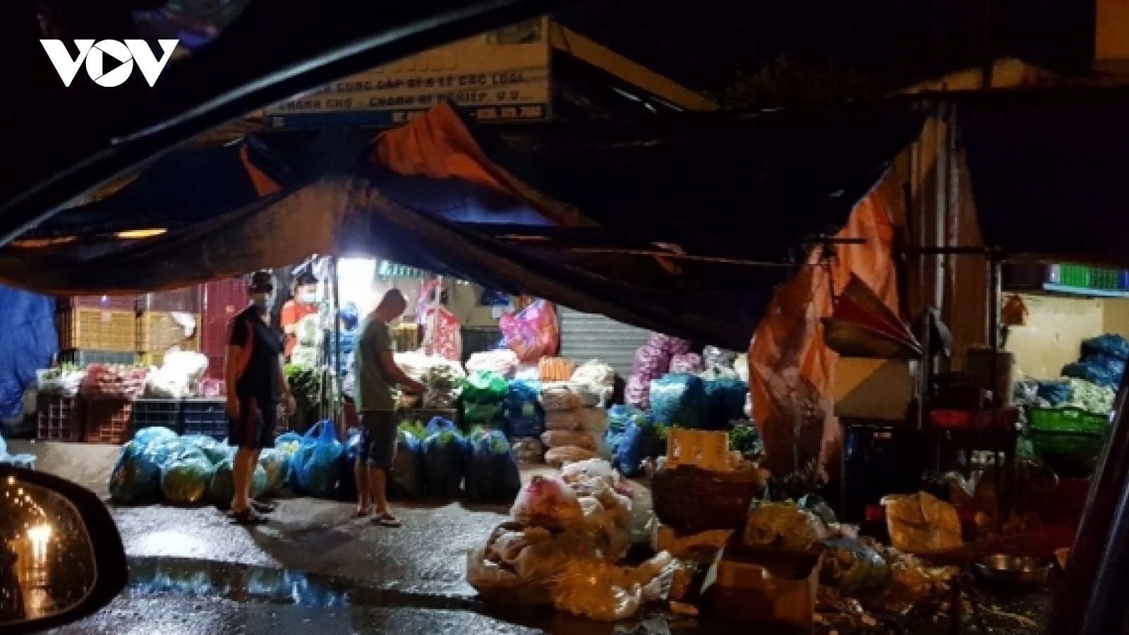 VOV.VN - Chiều 17/7, ông Lê Văn Tuyển, Phó Giám đốc Công ty TNHH Quản lý và Kinh doanh chợ Đầu mối Nông sản thực phẩm Hóc Môn cho biết, để giải quyết nguồn hàng hóa cho TP.HCM, ban quản lý chợ đang khẩn trương triển khai điểm trung chuyển hàng 2.000m2 tại bãi xe container trong khu vực chợ.