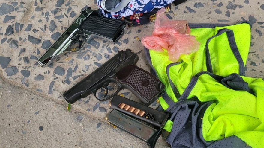 VOV.VN - Quá trình làm thủ tục cho khách nhập cảnh, cơ quan chức năng phát hiện trong hành lý của 1 hành khách có cất giấu 2 khẩu súng ngắn và 25 viên đạn.