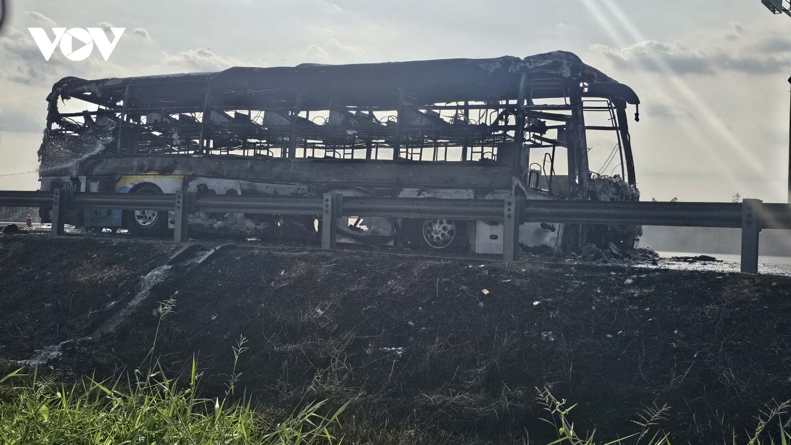 VOV.VN - Chiều nay (27/4), một xe ô tô chở công nhân đang chạy trên Quốc lộ 1 ở Long An thì bất ngờ bị một xe máy băng ngang đầu. Tài xế giật mình đánh lái tránh va chạm và hậu quả là xe ô tô lao lên dải phân cách, lật ngang.