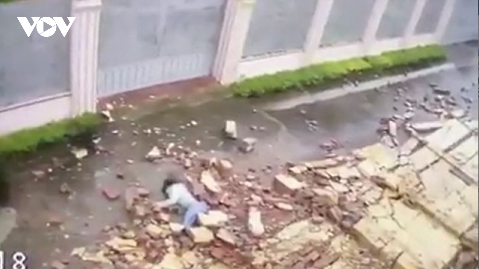 VOV.VN - Chiều (28/10), trong lúc mưa to, gió lớn do ảnh hưởng của bão số 9, một cô gái (ở thành phố Pleiku, Gia Lai) đang đi bộ ngoài đường bỗng bị một mảng tường lớn đổ ập vào người, bất tỉnh.
