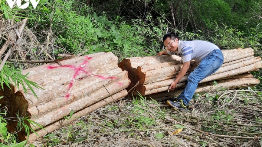 VOV.VN - Chi Cục Kiểm lâm Tỉnh Gia Lai cử lực lượng kiểm tra thực tế hàng chục cây gỗ bị chặt hạ tại khu vực biên giới ở huyện Chư Prông, tỉnh Gia Lai.