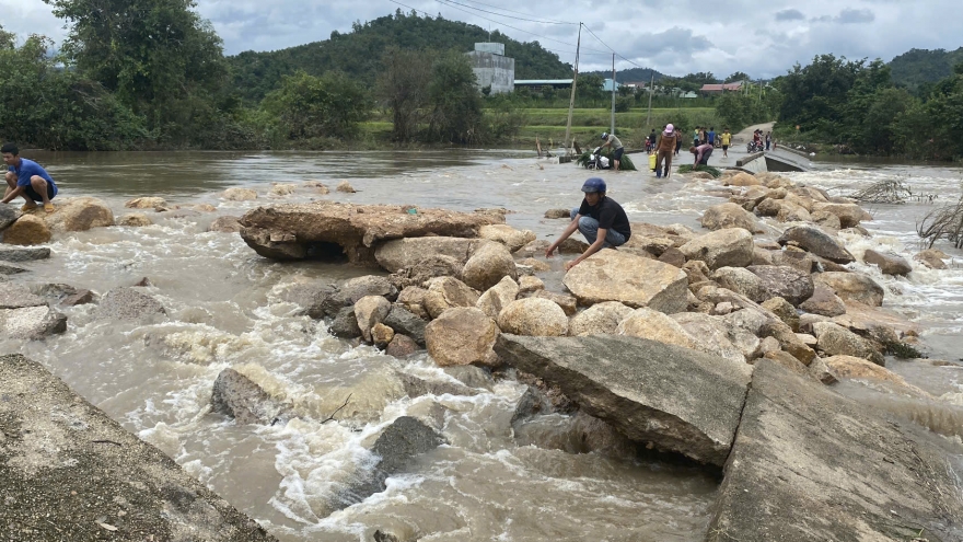 VOV.VN - Chiều 30/8, ông Lê Tiến Mạnh, Chủ tịch UBND xã Ia Pa, Gia Lai cho biết, chính quyền địa phương đang khẩn trương khắc phục sự cố ngầm tràn bắc qua suối Đăk Pi Hiao bị hư hỏng nặng, khiến 319 hộ dân làng Mơ Nang bị cô lập từ tối 29/8.