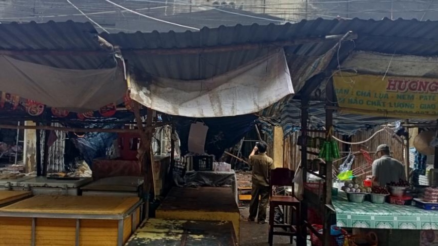 VOV.VN - Tuy không bị thiệt hại về người, không xảy ra cháy lan ra khu dân cư, nhưng nhiều hàng hóa tại 16 ki-ốt đã bị lửa thiêu rụi, gây thiệt hại lớn về tài sản.