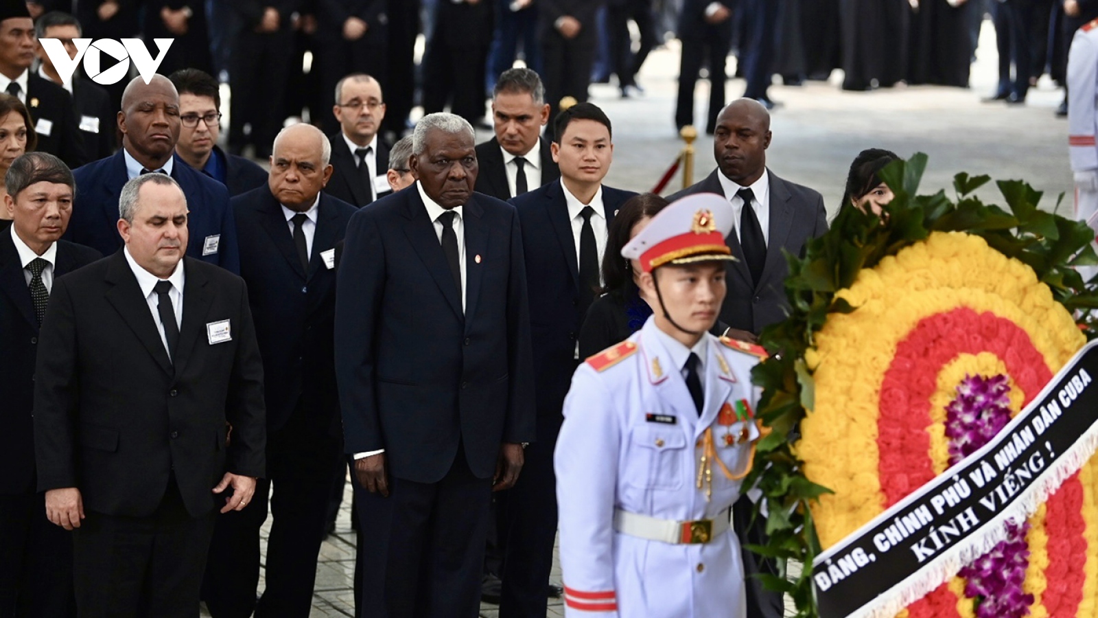 VOV.VN - Sáng nay (25/7), Lễ viếng Tổng Bí thư Nguyễn Phú Trọng được tổ chức đồng thời tại Nhà tang lễ Quốc gia số 5 Trần Thánh Tông, thành phố Hà Nội; Hội trường Thống Nhất, TP.HCM và tại quê nhà xã Đông Hội, huyện Đông Anh, thành phố Hà Nội. Trong sáng nay, đã có nhiều đoàn khách quốc tế đến viếng Tổng Bí thư Nguyễn Phú Trọng.