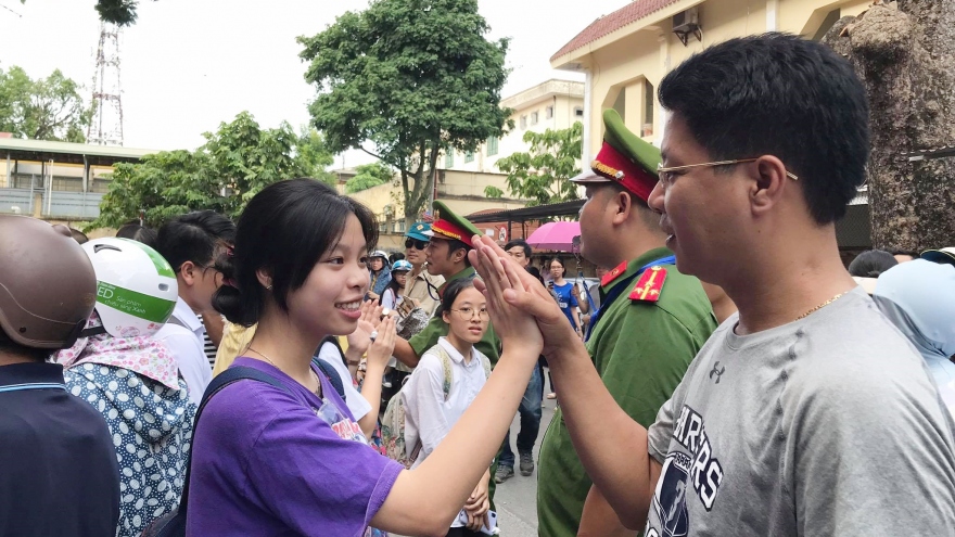VOV.VN - Sáng 17/7, thí sinh tại Hà Nội bước vào kỳ thi lớp 10 THPT. Tại điểm thi, các phụ huynh không quên nói lời động viên, ôm con thật chặt trước giờ thi.