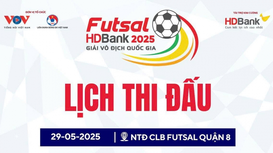 Lịch thi đấu bóng đá Việt Nam hôm nay 29/5VOV.VN - Lịch thi đấu bóng đá Việt Nam hôm nay 29/5 nhận được sự chú ý với những trận đấu tại Giải Futsal HDBank Vô địch Quốc gia 2025.
