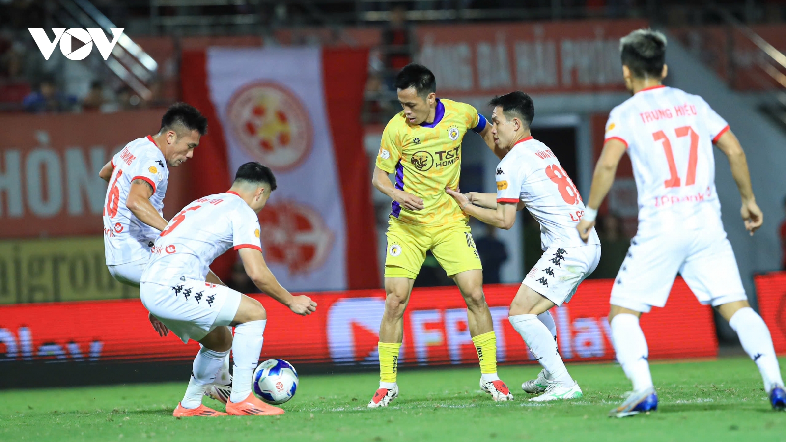 VOV.VN - CAHN hòa hú vía không bàn thắng trước CLB TP.HCM trên sân nhà Hàng Đẫy ở vòng 19 V-League 2024/2025 trong trận đấu mà đội chủ nhà chỉ còn 9 người trên sân sau khi Nguyễn Văn Đức và Hồ Ngọc Thắng phải nhận thẻ đỏ.