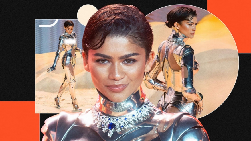 VOV.VN - Nữ diễn viên Zendaya gây ấn tượng trong bộ đồ robot khi đến buổi công chiếu phim 'Dune: Part Two' tại London. Bộ trang phục được thiết kế riêng, là một phép ẩn dụ nghệ thuật về nữ quyền và mối quan hệ phức tạp giữa phụ nữ và máy móc.