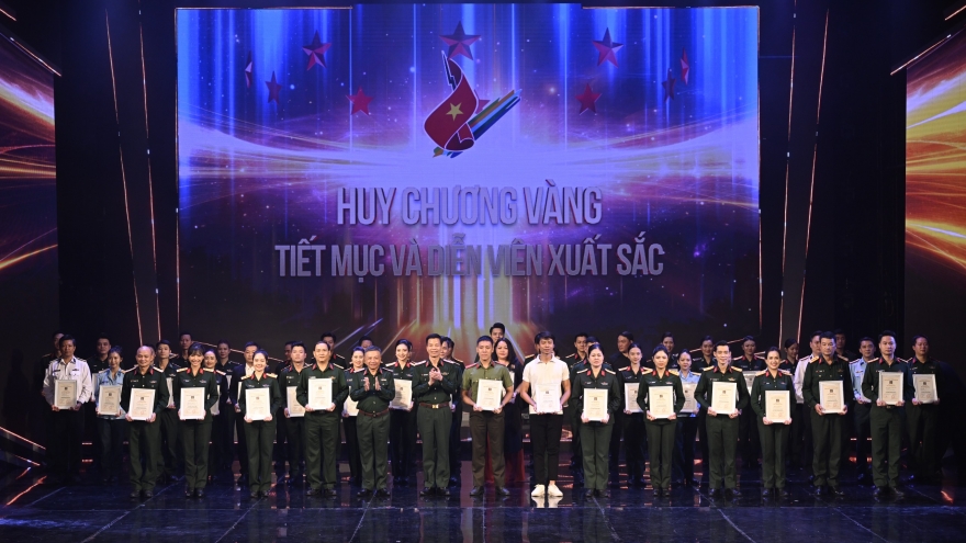 VOV.VN - Sau 12 ngày diễn ra liên tục, Hội diễn nghệ thuật chuyên nghiệp về đề tài Quốc phòng toàn dân năm 2023 đã kết thúc với lễ bế mạc và trao giải cho các tổ chức và cá nhân xuất sắc, vào tối 21/10 tại Nhà hát Quân đội, Hà Nội.