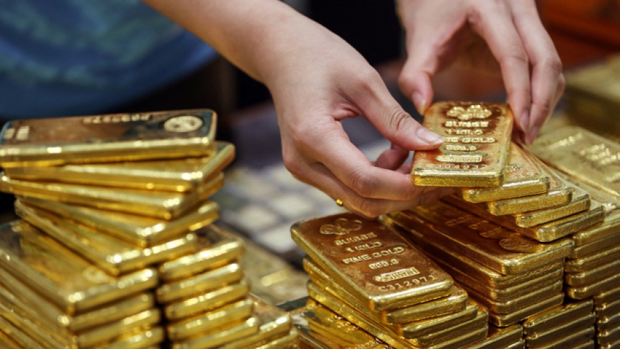 VOV.VN - Giá vàng trong nước giảm trong khi vàng trong thế giới tăng. Hiện giá vàng thế giới vẫn thấp hơn giá bán vàng SJC khoảng 5,86 triệu đồng/lượng.