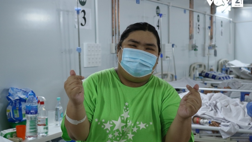 VOV.VN - Gặp Lê Phạm Hồng Phúc tại Trung tâm hồi sức tích cực sau 26 ngày điều trị, cô gái nặng 130 kg mắc Covid-19 vui vẻ trò chuyện như chưa từng trải qua phút nguy kịch. Phúc sắp được xuất viện.