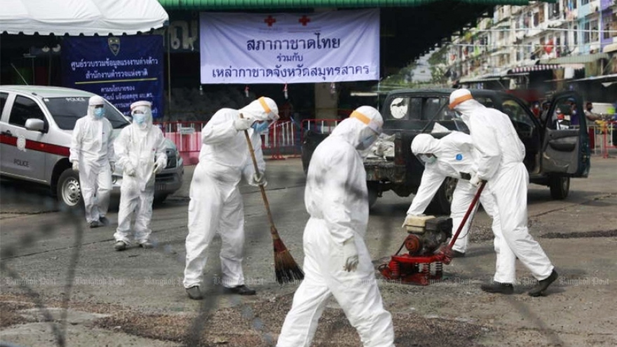 VOV.VN - Chính quyền thủ đô Bangkok, Thái Lan đã ra lệnh đóng cửa khẩn cấp khu chợ Bang Khae sau khi phát hiện hơn 80 ca dương tính với Covid-19, tất cả đều không có triệu chứng rõ rệt.