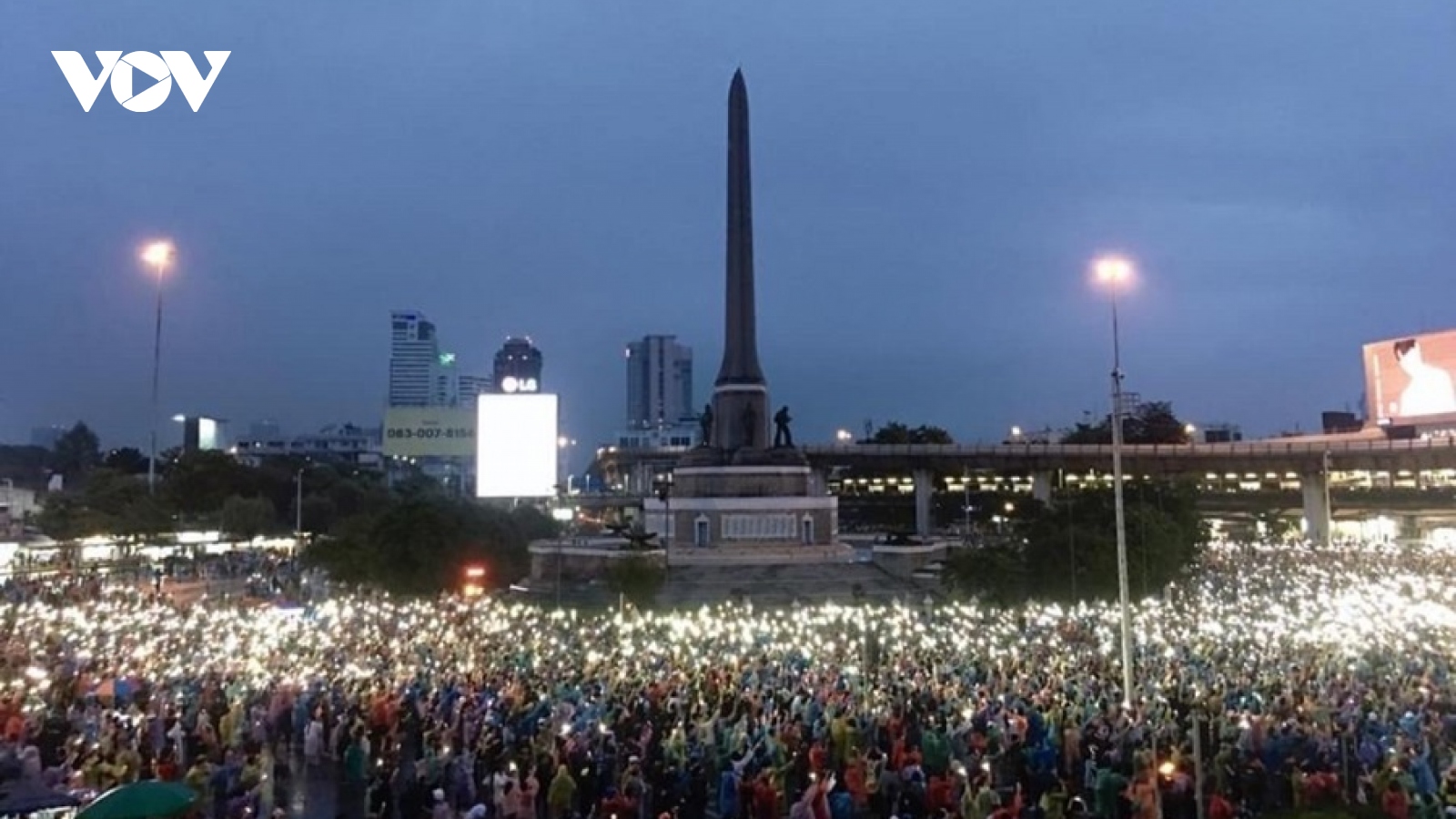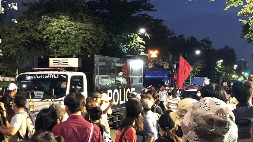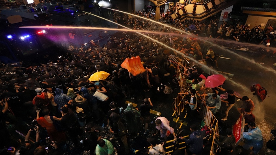 VOV.VN - Tối 16/10, cảnh sát Thái Lan đã sử dụng vòi rồng dẹp những người biểu tình tại trung tâm Bangkok trong bối cảnh đạo luật về tình trạng khẩn cấp đã được ban bố.