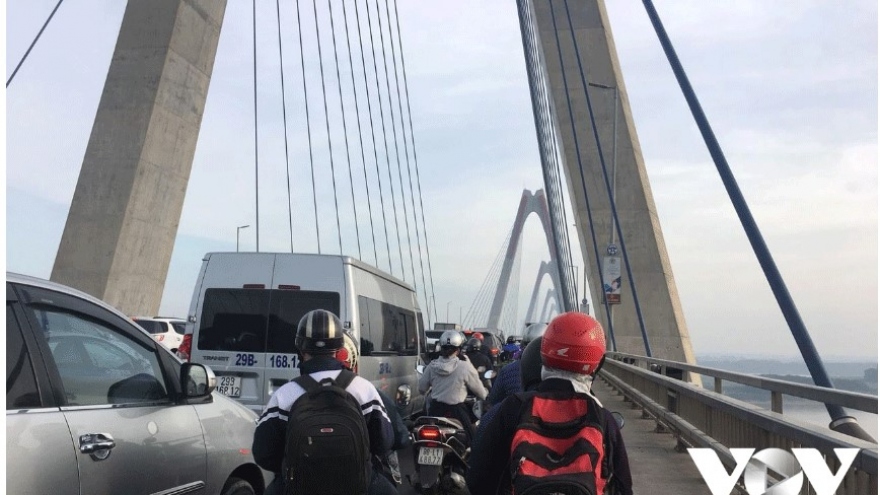 VOV.VN - Đơn vị kiểm định sẽ bố trí chốt chặn tại đầu cầu Nhật Tân hướng Võ Chí Công đi Võ Nguyên Giáp, lắp đặt biển báo, rào chắn, đèn báo hiệu, đèn chiếu sáng ban đêm cách đầu cầu Nhật Tân 200m, nhắc lại tại 150m, 50m và tại vị trí chốt.