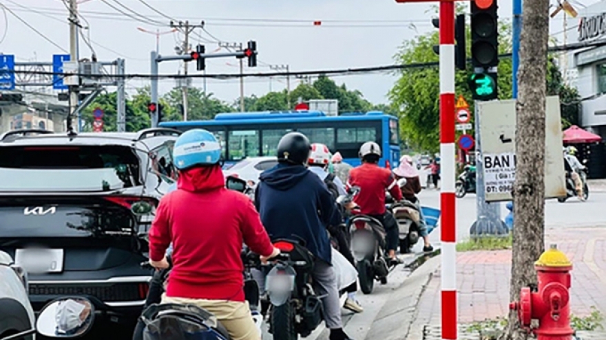 VOV.VN - Thính giả Nguyễn Nam (Hải Phòng) hỏi: "Khi đi qua ngã tư có biển báo được phép rẽ phải khi đèn đỏ, nhiều lúc xe máy đứng chắn hết lối rẽ phải khiến tôi điều khiển ô tô không thể lách qua. Vậy theo quy định của pháp luật, hành vi chắn lối rẽ phải của phương tiện khác có bị phạt không?".