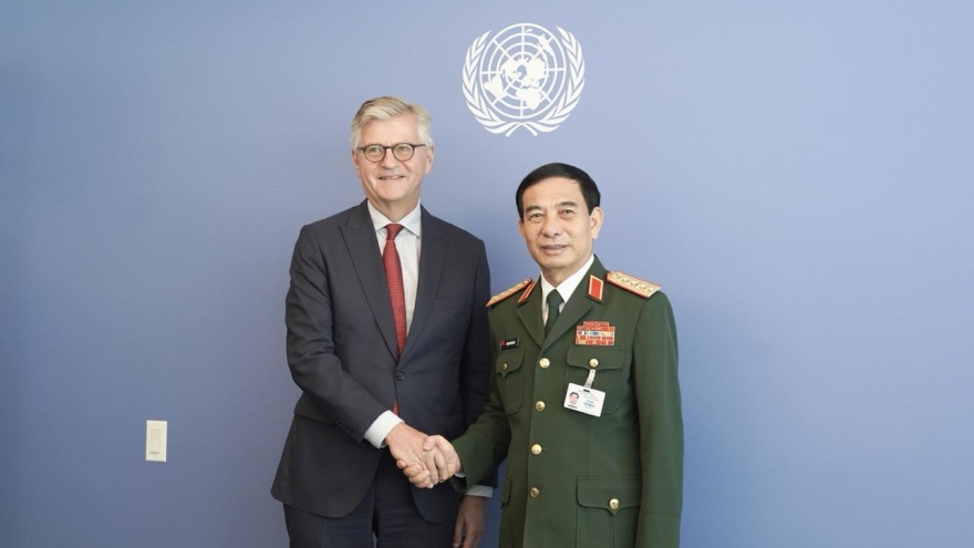 VOV.VN - Trong khuôn khổ tham dự Hội nghị thượng đỉnh tương lai, Đại hội đồng Liên hợp quốc khóa 79, làm việc tại Hoa Kỳ của đoàn đại biểu cấp cao Việt Nam, Đại tướng Phan Văn Giang, Ủy viên Bộ Chính trị, Phó Bí thư Quân ủy Trung ương, Bộ trưởng Bộ Quốc phòng ngày 23/9 đã gặp Phó Tổng Thư ký Liên hợp quốc phụ trách hoạt động gìn giữ hòa bình Giăng Jean-Pierre Lacroix.