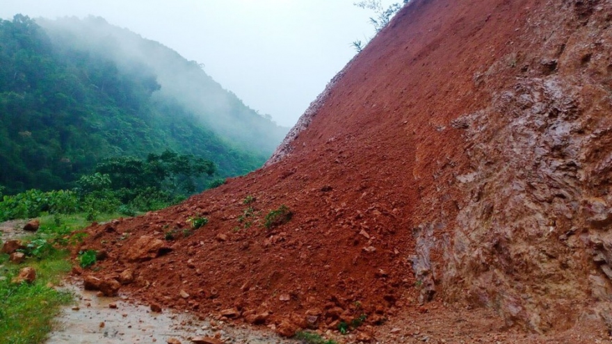 VOV.VN - Ảnh hưởng của đợt mưa lũ, sáng sớm nay một khối lượng đất đá lớn đã sạt xuống Quốc lộ 15C (đoạn qua xã Nhi Sơn, huyện Mường Lát) gây ách tắc giao thông. Chính quyền địa phương, lực lượng chức năng đang điều động phương tiện, nhân lực khẩn trương xử lý khắc phục