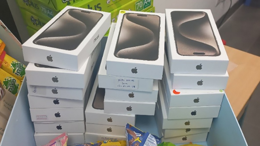 VOV.VN - Chi cục Hải quan cửa khẩu Sân bay quốc tế Đà Nẵng vừa tạm giữ lô hàng lậu hơn 20 chiếc điện thoại iPhone 15 Promax cùng hộp và phụ kiện trong hành lý cá nhân của nam hành khách người nước ngoài, nhập cảnh từ Thái Lan về Việt Nam. Tổng trị giá lô hàng vi phạm khoảng 700 triệu đồng.